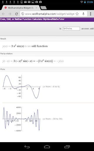 Enter any function and this calculates if its even or odd (or neither) . It does just what it says on the tin. So if you have work that you need to double check, then look no further.