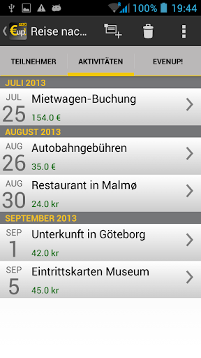 Legen Sie ein Event an, fügen Sie es Aktivitäten, Teilnehmer sowie deren Ausgaben hinzu und bleiben Sie stets auf dem Laufenden!