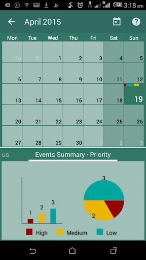 You can control notification popups for reminders / alarms / tasks based on event priority. You can also enable / disable vibration and sound notifications. Scheduled events / reminders / alarms / tasks will be visible on your calendar as a small rectangle of its priority color. And these events can be easily re-open directly by touching the respective day on calendar. All events / reminders / alarms / tasks are having individual option for view/edit or delete. Reminder priorities will be seen on left side of event description to identify importance clearly.