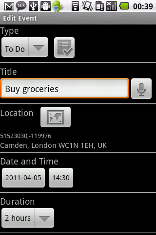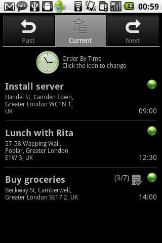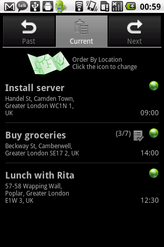 Event Scheduler is a productivity tool that help you manage your daily events. The keystone off this application is using the location to trace a route between events and to scheduled them by their proximity or by time. Also each event can have a To Do list. The Event Scheduler enables the events import/export from/to the Google Calendar.