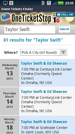 Event Tickets Finder is an App developed for OneTicketStop.com and lets you discover all types of tickets for concerts, theaters, Broadway, sport events and more with the push of a button!