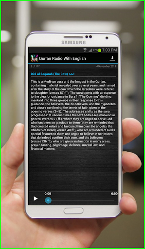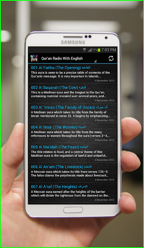 Listen to Live Qur'an Radio in Arabic or with English Translation or you can download each sura for offline listening. Each sura contains in introduction and background of the sura.