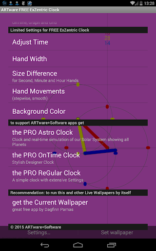 免費動態壁紙(LWP)ExZentric的時鐘都有它結束的時針和分針,秒針分針年底。這個簡單的變化會導致有些複雜和有趣的圖案和一個小而有趣的挑戰讀取時間。