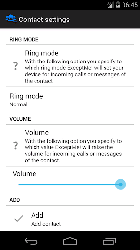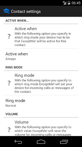 Furthermore, with "ExceptMe!" it is possible to raise the volume for calls or messages from the defined contacts and then decrease it to the original volume.