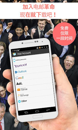 * 可连接至最受欢迎的电邮供应商:Exchange、雅虎、Outlook、AOL、Gmail、Hotmail email 等等。