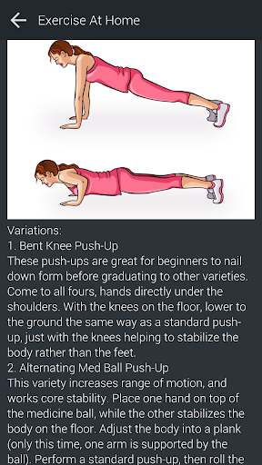 Exercise At Home is a fitness training buddy and fitness training app that will help you keep fit and have fitness at home. It contains great exercise program for beginners and exercise instructions for advanced people who already know what to do to be fit. These wokouts will help you to loose belly fat, loss calories, burn fat, loose stomach fat, loss weight, reduce stomach and much more. If you lack workout inspiration and workout instructions then we can offer something really useful. This no equipment workouts app will help you to learn exercise workout setups and push-ups exercise, pull ups exercise, different types of sit ups, lower-body strength exercise, body toning exercise etc. Exercise At Home is a great fitness workout app that will help you to be in shape doing exercises at home. Don’t be an exercise planner. Do daily workouts using our circuit training assistant app and keep fit!
