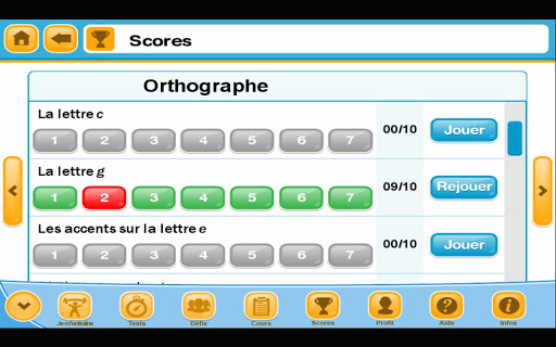 - Un tableau de scores permet de suivre la progression de l’enfant.