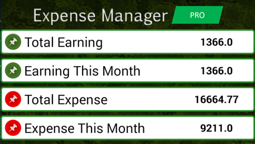 Expense Manager, Income Manager, PRO, Incomes, Expenses.