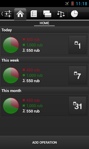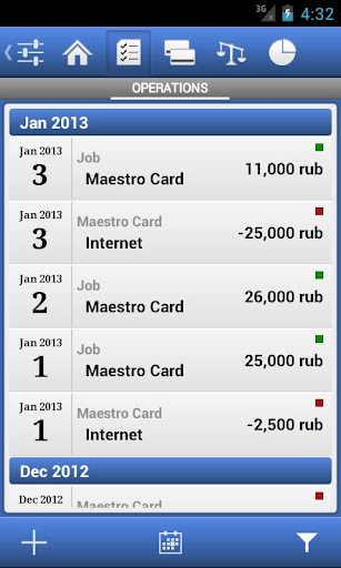 The second tab lists available operations. There are three types of operations: expense, income and money transfer.