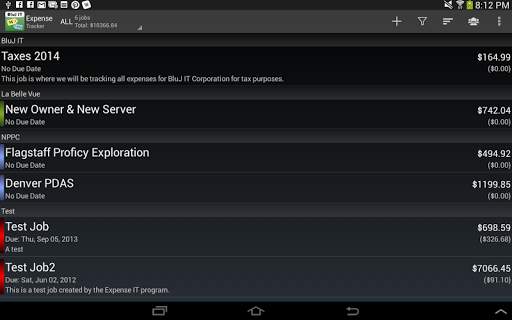 * Payment management - as customer payments are received, they too can be tracked within Expense Tracker. These payments as well as due dates can be used to auto calculate job statuses.