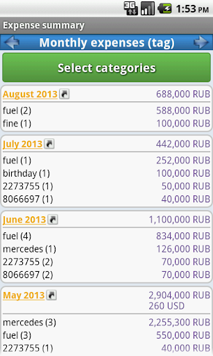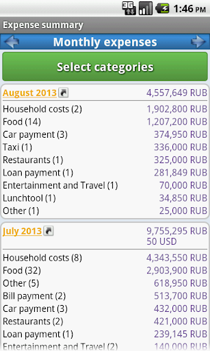 The application allows you to keep track of daily household expenditure on various categories and tags, create and modify existing categories of expenditure, as well as view statistics of expense (per day, week, month, year and any period) by categories and tags. In each category, see the full story of expenditure with the possibility of making changes. The application allows you to configure data backup to Dropbox folder on the user's schedule.