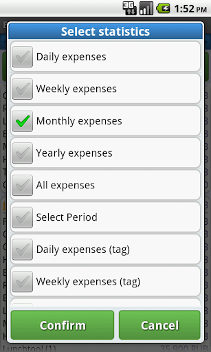 - view and filter statistic of expenses by categories and tags per year, month, week, day and any period of time;