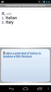 • Easy copy-and-paste functions allow unknown words or phrases to be copied from an active application like the web browser or email to the clipboard, and automatically translated by switching back to Langenscheidt.