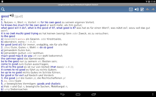 • NEW! Full linguistic information – with declension and conjugation tables – is included, making the Langenscheidt-App a must-have for any language scholar (for English)!