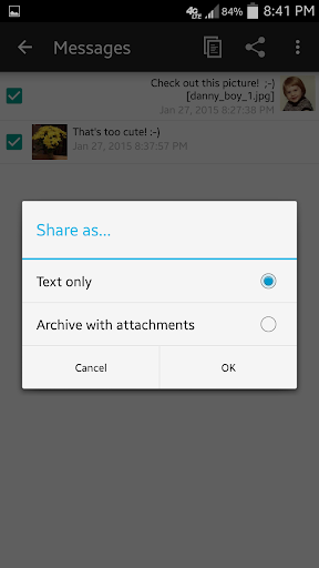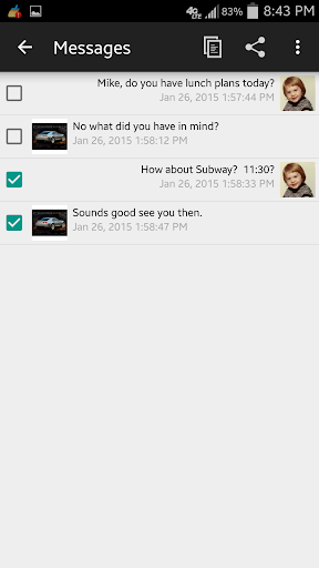 With this app, you will be able to quickly and easily export your SMS/MMS messages for archival purposes, or simply to forward a message thread to someone else in an email or text.