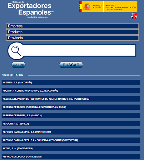 El Ministerio de Agricultura,Alimentación y Medio Ambiente (MAGRAMA) ofrece una aplicación basada en las nuevas tecnologías para acceder fácilmente a la información de los exportadores españoles de productos pesqueros.