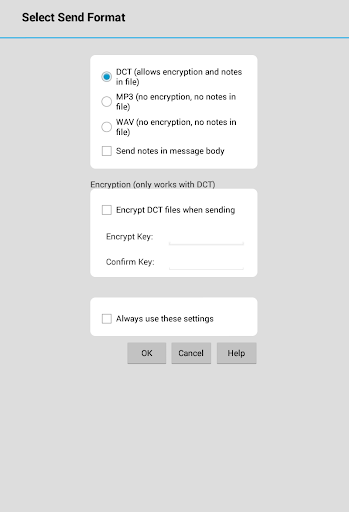 HIPAA compliant secure encryption of dictation recordings is also available for protecting sensitive client or patient information.