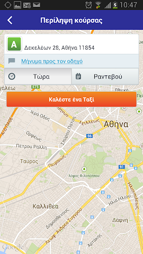 - Δυνατότητα κλήσης ταξί για τη συγκεκριμένη στιγμή ή δυνατότητα κλήσης με ραντεβού