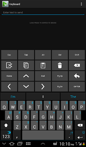 Use phone's soft keyboard, plus special keys like Alt, Ctrl, Esc, Tab, Arrows, etc.