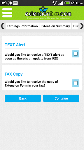 ExtensionTax.com an IRS authorized e-file website to extend the income tax due dates in simple steps and on the go. Receive instant TEXT alert on your extension return status in just minutes once IRS accepts your tax return.