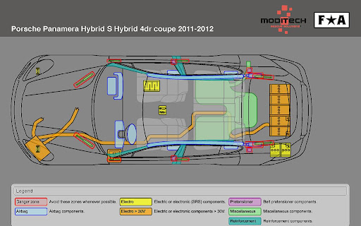 Know where to make your cut during an extrication. The Hybrid Auto Extrication Guide provides clear, intuitive, zoomable schematics, showing the location of airbags, airbag sensors, high voltage electrical lines, fuel, pistons, and seatbelt pretensioners.