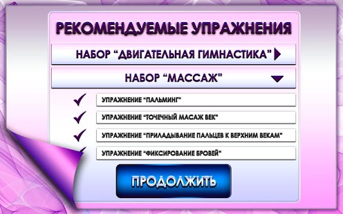 2. Массаж: комплекс, направленный на улучшение кровообращения, релаксацию глазных мышц, полное расслабление органов зрения.