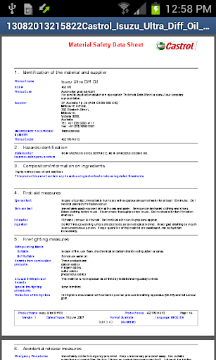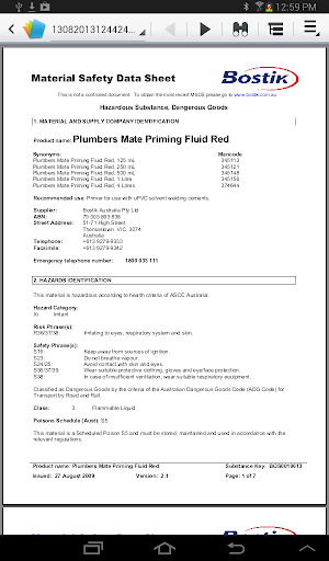 • MSDS stored in your device as PDF.