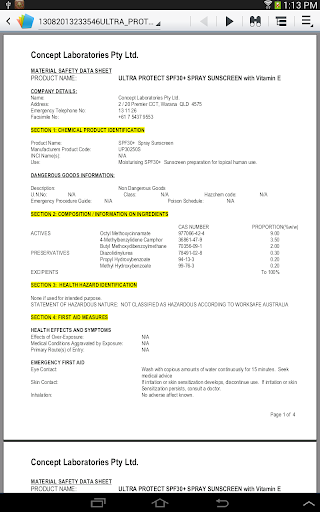 • From the app you can email or print a version of the MSDS on your device.