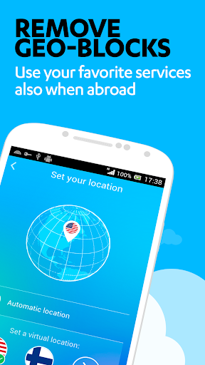 - Set your virtual location to a different country than where you are. The app gives you access to internet services that are restricted by location – for example if you’re traveling abroad, you can set your location to your home country and access the same services that you can from the comfort of your home. Currently, you can connect to more than 10 VPN servers in Europe, North America and APAC.