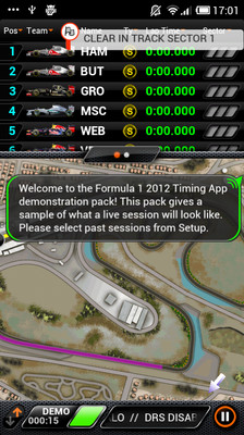 F1 Timing 2012是F1官方在iphone、touch、android上唯一指定的live timing和赛场跟踪软件,功能强大。