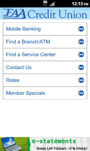 Access to your FAA Credit Union account is in the palm of your hands. With FAA Credit Union's new mobile app version 2.0, you can view account balances, transaction history, transfer funds, pay bills, find branches, read credit union news and specials and contact us from anywhere.