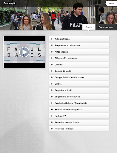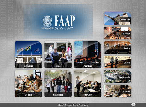 A FAAP apresenta seu aplicativo oficial com todas as informações da Fundação Armando Alvares Penteado na palma da sua mão. Use o aplicativo FAAP para pesquisar pelos cursos disponíveis, navegar pelos mapas do campus, ter acesso às informações e notícias relevantes para todos os campus da universidade. Recursos disponíveis no aplicativo: informações da Instituição, Cursos (Graduação, Pós, MBA, Livres), Colégio, Eventos, Notícias, Exposições anteriores do Museu, Teatro, Mapas, Imagens e Vídeos. Na área do aluno é possível conferir notas e faltas, horários das aulas, extrato de pagamentos, formulários para requerimentos e consulta/ renovação dos itens disponíveis na biblioteca.