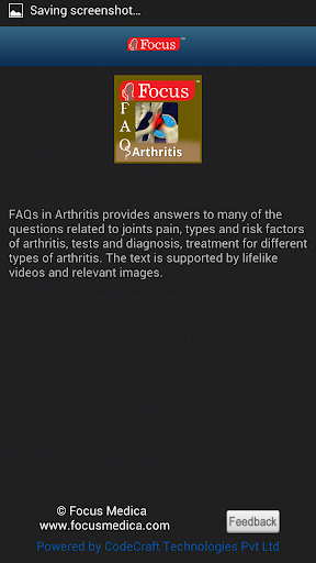 FAQs in Arthritis provides answers to many of the questions related to joints pain, types and risk factors of arthritis, tests and diagnosis, treatment for different types of arthritis. The text is supported by lifelike videos and relevant images.