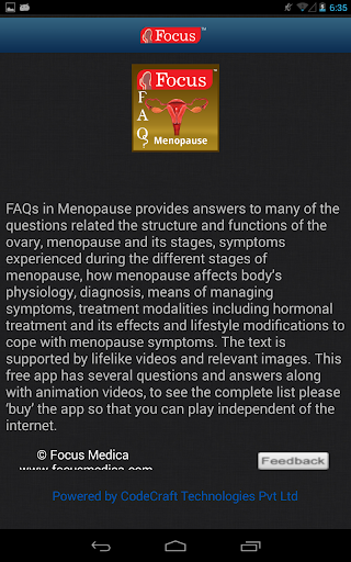 FAQs in Menopause provides answers to many of the questions related to anatomy and functioning of the ovaries, different stages in menopause, causes, symptoms, risk factors and complications associated with menopause, diagnosis, medications prescribed to treat or manage menopause and necessity of lifestyle changes during menopause. The text is supported by 15 animated videos and relevant images.