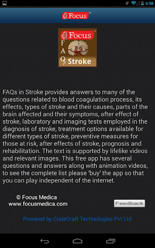 FAQs in Stroke provides answers to many of the questions related to causes, risk factors, symptoms, types of stroke, diagnosis & treatment. Also provides guidelines for prevention and rehabilitation of stroke. The text is supported by 15 animated videos and relevant images.