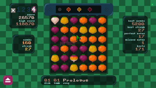 FAT BEETS - スーパーリズム野菜 (Super Rhythm Vegetables) is a rhythm/puzzle game that takes the colored note mechanics of music games like Guitar Hero and Rock Band with the tile matching mechanics of puzzle games like Bejeweled and Tetris and wraps it up in a retro-Japanese console game aesthetic and all original chip-tune soundtrack.