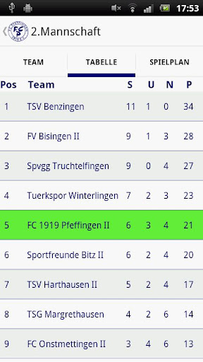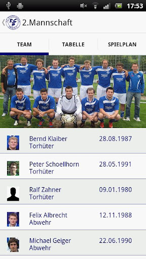 sowie 1. Mannschaft, 2.Mannschaft und AH mit komplettem Kader, Spielplan und Tabelle.