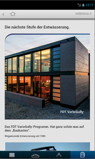 Die neue App von FDT bietet jetzt noch mehr Informationen für den Flachdach-Profi: Verlegeanleitungen, Datenblätter, Detailzeichnungen und mehr. Alles ist in der App enthalten. Nur für die Ansprechpartner-Suche wird eine Internetverbindung benötigt. Ganz aktuell: Die VarioGully Produktinnovationen 2014.