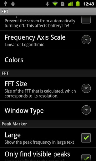 FFT is a real-time analyzer (RTA) meant for professional use. Geared toward use in the hectic, time-critical environments encountered in live sound, this app is designed to not slow you down. Even with all the features packed in, going to the Settings menu is a rarity - most things are accessible from menus on the main screen. You'll never miss a moment, especially since it's built on the lightning-fast speed of OpenGL graphics and native code.