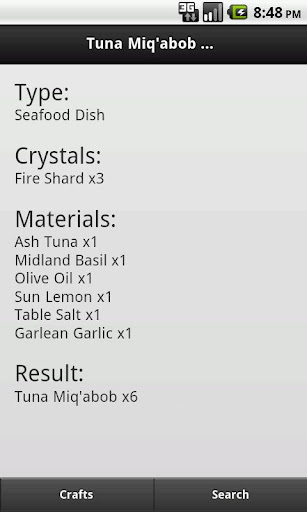 Sick of having to tab out of the game to look up a recipe while you are playing? Then this app is for you!