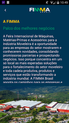 Expositores e visitantes da FIMMA Brasil 2015 encontram, de forma prática, informações importantes sobre a feira, além de conhecerem os serviços e as facilidades oferecidos para garantir conforto e comodidade aos participantes, contribuindo para que você usufrua toda as oportunidades que a FIMMA oferece: geração de negócios, acesso ao conhecimento, contato com as mais aguardadas soluções para a cadeia produtiva de madeira e móveis, entre outras.