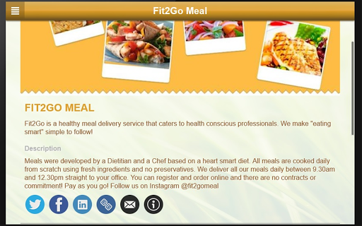 Fit2Go is a healthy meal delivery service that caters to health conscious professionals. We make "eating smart" simple to follow!
