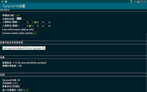 它可以录制WAV,连接MIDI键盘与分裂能力(实验性的功能为Android3.1及以上版本,使用USB OTG线),并采取小步进音序器的优势。即使是很小的设备现在可以利用2合成得益于优化的布局。为了简化的经典用法,复杂的功能,现在只能在“专家模式”(激活的设置页面)