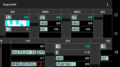 SynprezFM2也是雅马哈DX7模拟器,能够准确渲染上传到外部存储目录设置通过菜单系统专用信息的文件,以延长实验。您还可以创建并保存自己的补丁,或者通过编辑的(自愿)未分类内建的人之一,或者从头开始的“初始化语音”功能启动。