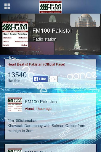 The official application of FM100, the very first FM radio of Pakistan. Enjoy the live streaming of all FM100 stations, facebook/twitter communities, and much more.