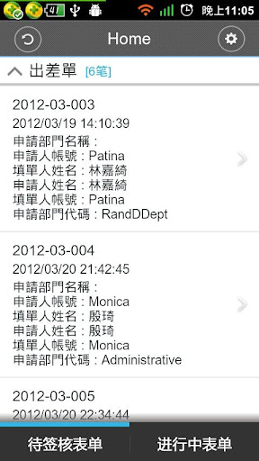 2.取得該帳號的待簽核表單及進行中表單列表;