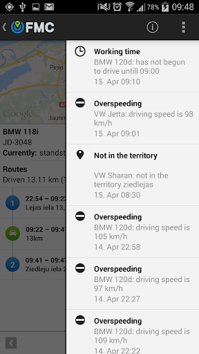 By using this mobile application you can access your vehicle data, follow their positions, routes, browse their route history, receive alerts about vehicles you have set up in web application.