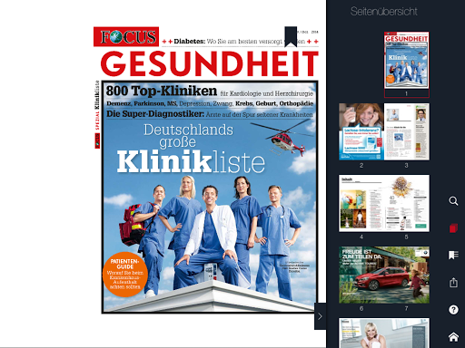 Sie erhalten die digitalen Ausgaben von FOCUS GESUNDHEIT zum Preis von 6,99 Euro. Die App bietet ein optimal an Tablets angepasstes Design, eine gute Lesbarkeit sowie eine einfache und intuitive Navigation.