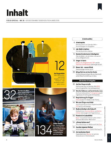 FOCUS SPEZIAL – den Ratgeber für große Entscheidungen – gibt es jetzt auch digital als App für Ihr Tablet. Die digitale Ausgabe „Deutschlands beste Arbeitgeber“ steht Ihnen sofort kostenlos zum Probelesen zur Verfügung!