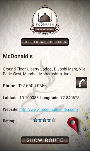 FOOD PATH is a cool GPS-supported application that lists out the nearest food joints around you and even shows you the route to reach where food is calling.There is also option to search restaurants in places of your choice and look for major landmarks in any given area.